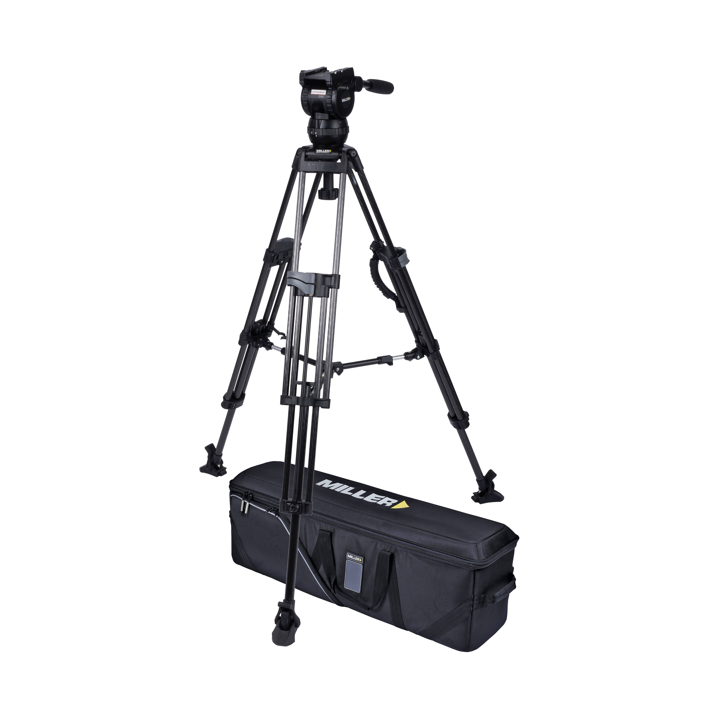 MILLER CX2 (1090) 75 Sprinter II 2-St Carbon Fiber Tripod (1620) Mid-Level Spreader (593) Pan Handle (679) Feet (475) Soft case (3502)